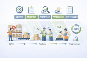 Définir : Le problème est formalisé, l’impact financier calculé (coût des retours, re-livraisons, insatisfaction client), et l’objectif fixé à 1 % d’ici 3 mois.
